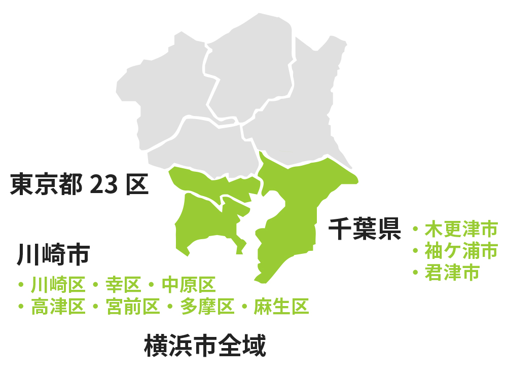 川崎市全域・横浜市全域・東京都23区・木更津/袖ケ浦/君津エリア