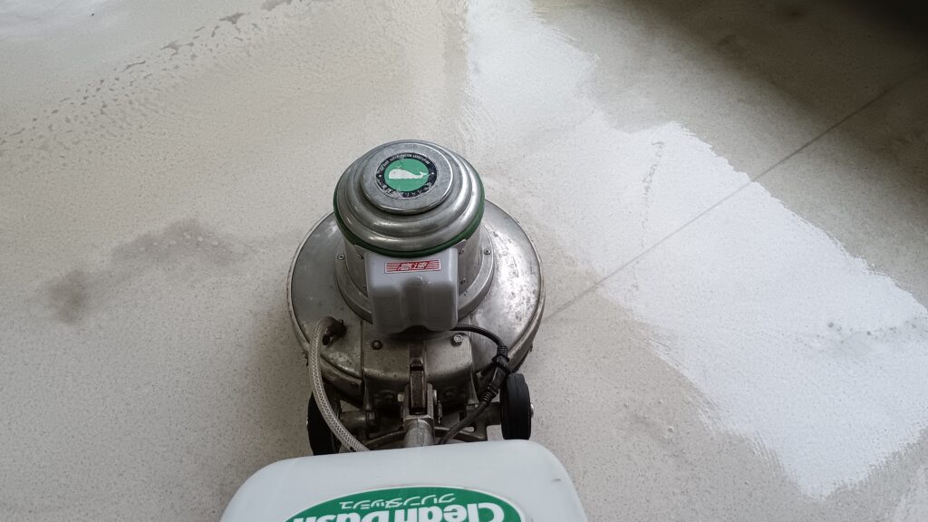 年に2回の床清掃になります。モップ等では落ちない汚れはポリッシャーで落としていきます。木更津、袖ケ浦エリアの店舗清掃はお任せください。